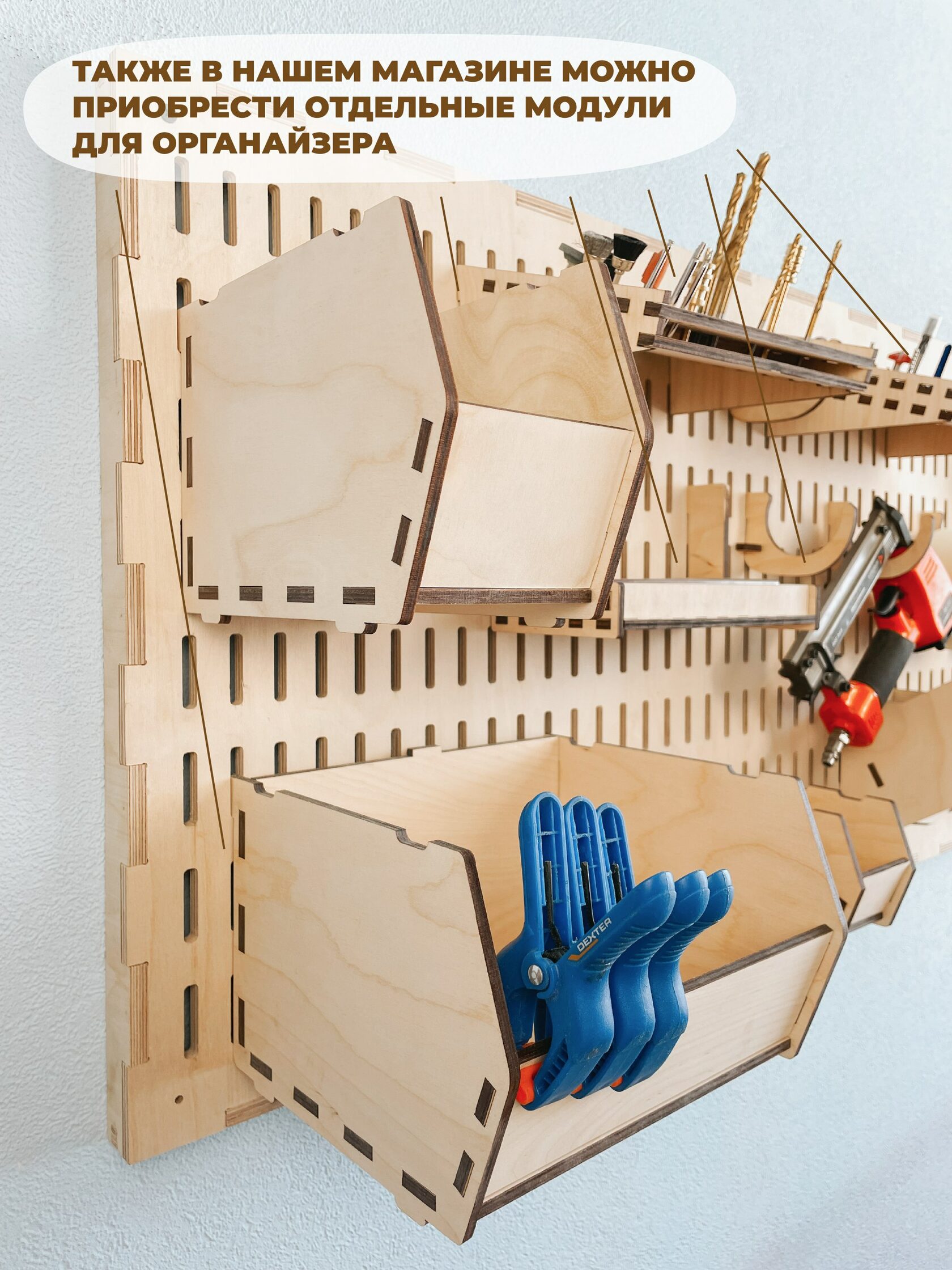 Это отличный подарок для мужа, друга и отца. Перфорированная панель выполнена из прочной фанеры ФСФ 9,5 мм, модули из фанеры ФК 6 мм.